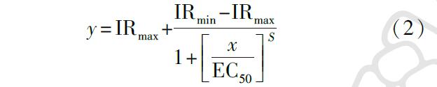 式中,x 為原水樣在稀釋水樣中的百分比;y 為呈現S 形形狀的發光抑制率;IRmax 和IRmin 分別為發光抑制率的很大值和很小值;S 為斜率參數;EC50 為很大半抑制濃度.